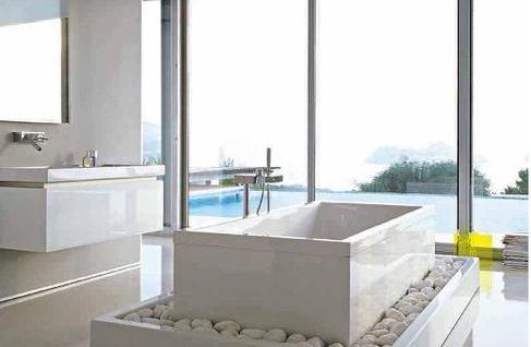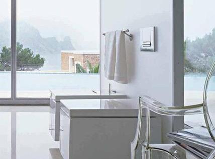 Charakteryzuje ją symetria oraz wyraźny podział powierzchni. Często odnajdziemy tu połączenia stali ze szkłem i kamieniem. Kafle polerowane na wysoki połysk pięknie odbijają światło. Ceramika bardzo prosta w formie ozdobiona oryginalnymi bateriami. Jet to styl, który najtrafniej określają słowa: „im mniej, tym lepiej" .