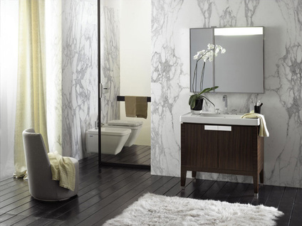 To łazienka inspirowana architekturą antyczną oraz secesyjną. Styl retro wzbudza poczucie ogromnego luksusu. Dobór odpowiednich materiałów, dodatków podkreśla wyszukany, bardzo elegancki styl łazienki. Ponieważ charakter łazienki odwołuje się do czasów starożytnych najczęściej stosowanymi kolorami są czernie, brązy oraz beże. Klasycznego smaku nadadzą marmury oraz mozaiki.