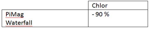 Związki chemiczne, takie jak chlor mają charakter zakwaszający. Woda PiMag Waterfall wykazuje zmniejszenie ilości chloru, jak przedstawiono poniżej: