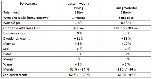Jest niezmiernie trudno porównywać produkty firmy Nikken z rozwiązaniami oferowanymi przez firmy konkurencyjne, ze względu na wysoce zaawansowaną technologię stosowaną w naszych systemach wodnych. Mając powyższe na względzie postanowiliśmy dokonać porównania urządzenia PiMag Waterfall z naszym obecnym systemem wodnym, tak aby móc dostrzec zalety naszego nowego produktu.