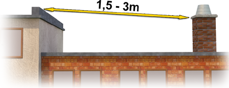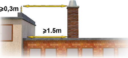 1. Co najmniej 0,30 m wyżej górnej krawędzi przeszkody dla kominów usytuowanych w odległości mniejszej niż 1,5 m od przeszkody